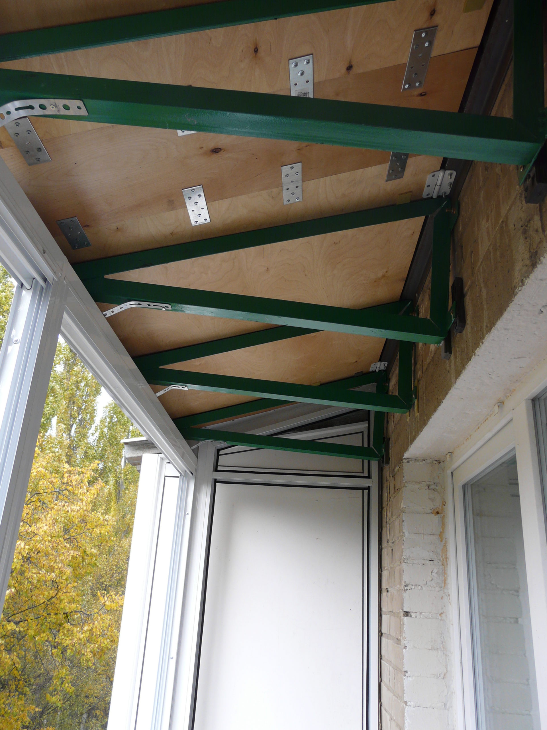 Самый надежный вариант крыши на балконах последних этажей. Стальные фермы крепятся к стене вашего дома, выдерживает большие снеговые и ветровые нагрузки.